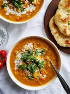 I make this Red Lentil Dal for my family A LOT. It’s delicious, easy to make and flexible for whatever vegetables you may have on hand.