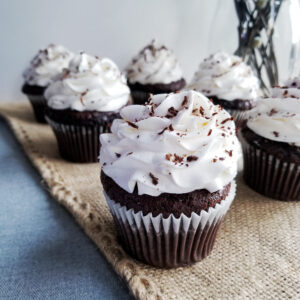 Stout lends a somewhat caramel undertone in baking and marries really well with chocolate. These chocolate stout cupcakes are topped with an almond Irish Cream frosting and are finished with a light flurry of chocolate shavings. While the alcohol bakes off in the cupcakes, the frosting does have some alcohol in it – if you’d like to avoid it, substitute the volume of vegan Irish cream with a tbsp of your favorite extract and some plant milk to get the consistency you want.