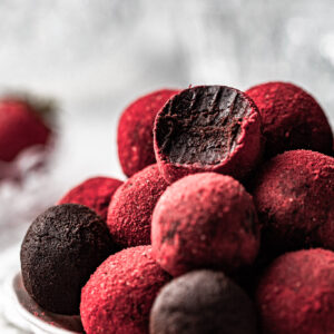 For strawberry chocolate truffles, crushed freeze-dried strawberries offer a punch of extra strawberry flavor. Freeze-dried strawberries are available online and in many grocery stores.
