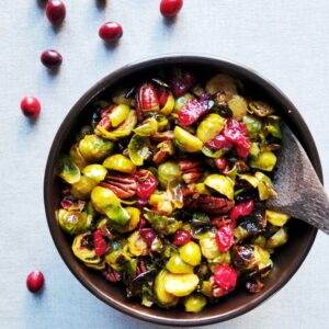 Roasted Cranberries, Brussels Sprouts and Pecans with Maple Mustard Dressing