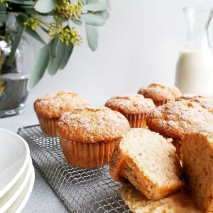 I’ve been in a banana recipe testing frenzy after ordering 10 pounds of imperfect bananas and these muffins are my family’s favorite so far. They make a nice breakfast with a side of fruit and coconut yogurt, and are a great pick me up for an afternoon snack. The moist crumb and light banana flavor marries so well with the crisp cinnamon sugar top. I’ve been working on a loaf version of this recipe, but have loved it most in muffin form because of the greater surface area for maximum cinnamon crunch!