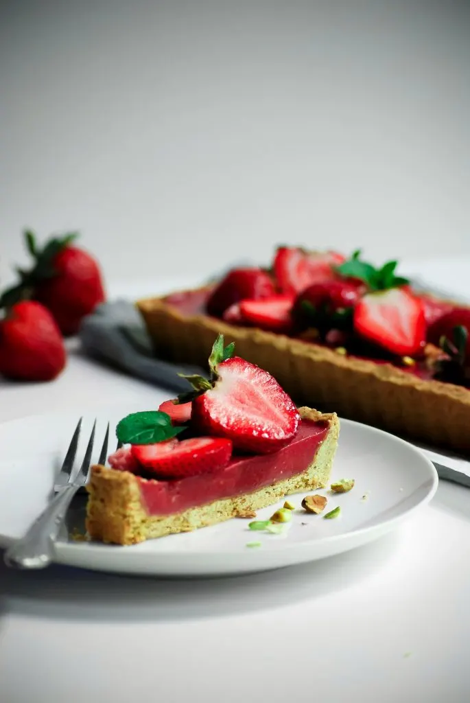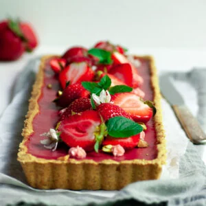 Vegan Strawberry Hibiscus Tart in a Pistachio Shortbread Crust